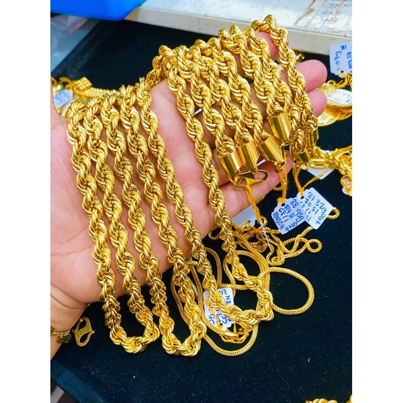 Rantai Leher Pasir Padu Dewasa Emas 916 Tulen Shopee Malaysia